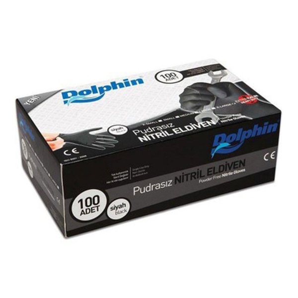 Dolphin Siyah Nitril Muayene Eldiveni Pudrasız